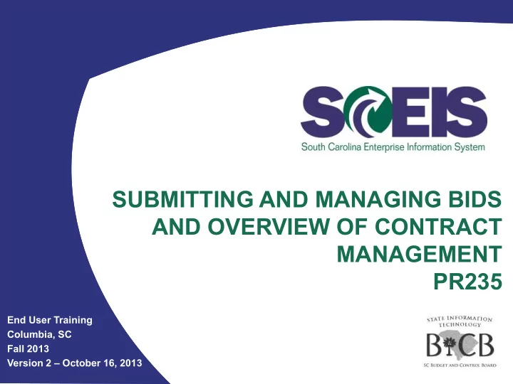 Vendor Contact Information Vendors must have a contact person to enter surrogate bids. Vendors who have gone through the SCEIS registration process after November 2007 will have a contact person. Vendors who were registered prior to 2007 and were transferred from the Comptroller General’s or MMO’s legacy vendor file will NOT have a contact person. If the vendor has a vendor number but does not have a contact person, the vendor will need to complete the new vendor registration process at www.procurement.sc.gov. The vendor should reference their current vendor number in Step 9 of the process in the Message to Administrator section. 62