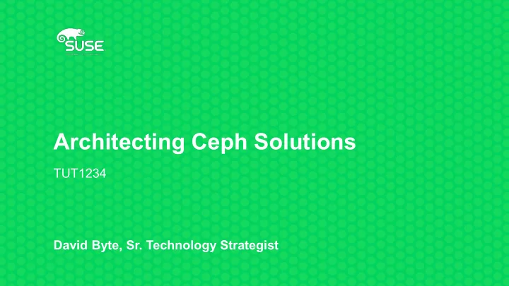 Architecting Ceph Solutions TUT1234 David Byte, Sr. Technology Strategist
