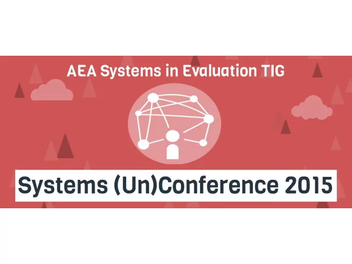 Participants rated some sessions higher on average than others. Over all three days on a scale of 1=poor and 5=excellent. Link between Culturally Responsive Evaluation & Systems-Oriented Evaluation Identifying System Leverage Points: Helpful Approaches Using a Complex Adaptive Systems Approach: Real-life Examples Defining and Distinguishing Systems Evaluation: Where are the Boundaries? Role of Accountability in Systems Evaluation Using a Developmental Evaluation Approach: Real-life Examples Support for a Systems Approach: Strategies for Promoting Buy-in Approaches for Capturing High-level Systems Patterns and Outcomes Visualizing Complex Systems: Tools and Strategies Incorporating a Systems Approach: Challenges and Strategies Defining System Boundaries: Building Stakeholder Consensus Using a Soft Systems Approach: Real-life Examples