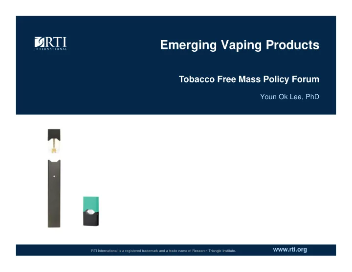 Emerging Vaping Products Tobacco Free Mass Policy Forum Youn Ok Lee, PhD www.rti.org RTI International is a registered trademark and a trade name of Research Triangle Institute.