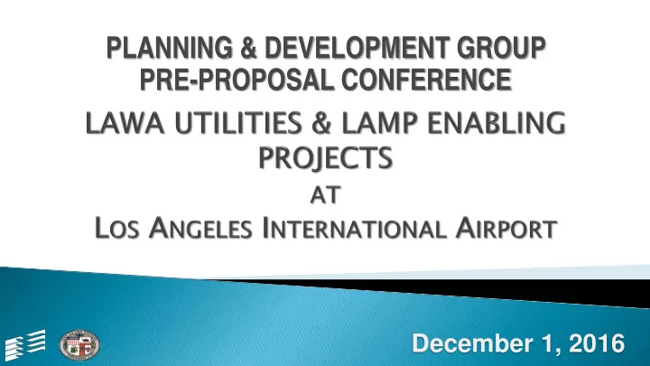 PLANNING & DEVELOPMENT GROUP PRE-PROPOSAL CONFERENCE December 1, 2016