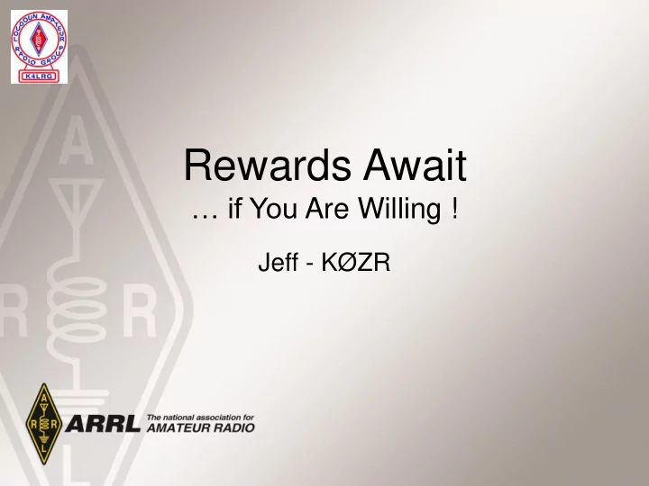 Rewards Await … if You Are Willing ! Jeff - KØZR